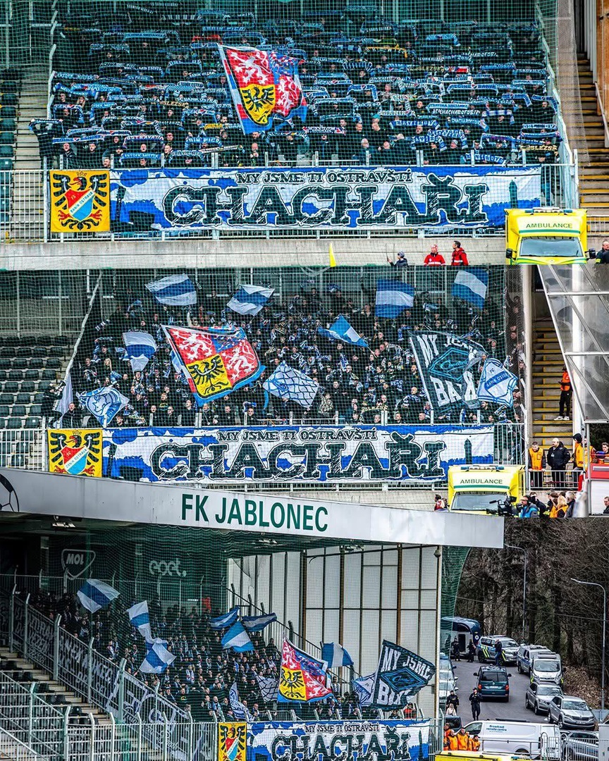 W środę 9 kwietnia, w ramach Pucharu Czech (MOL Cup) pojechaliśmy do odległego Jablonca. Dokładna data początkowo nie była znana, ale biorąc pod uwagę, że Baník zagra mecz z Duklą kilka dni później, ustalono, że mecz odbędzie się w najbliższą środę. Kiedy w końcu poznaliśmy datę, zaczęliśmy zastanawiać się, jak najlepiej dotrzeć na miejsce i w tym celu wybraliśmy autobusy. Choć przez długi czas wydawało się, że kierowca będzie podróżował praktycznie sam, w końcu jeden z autokarów się zapełnił.