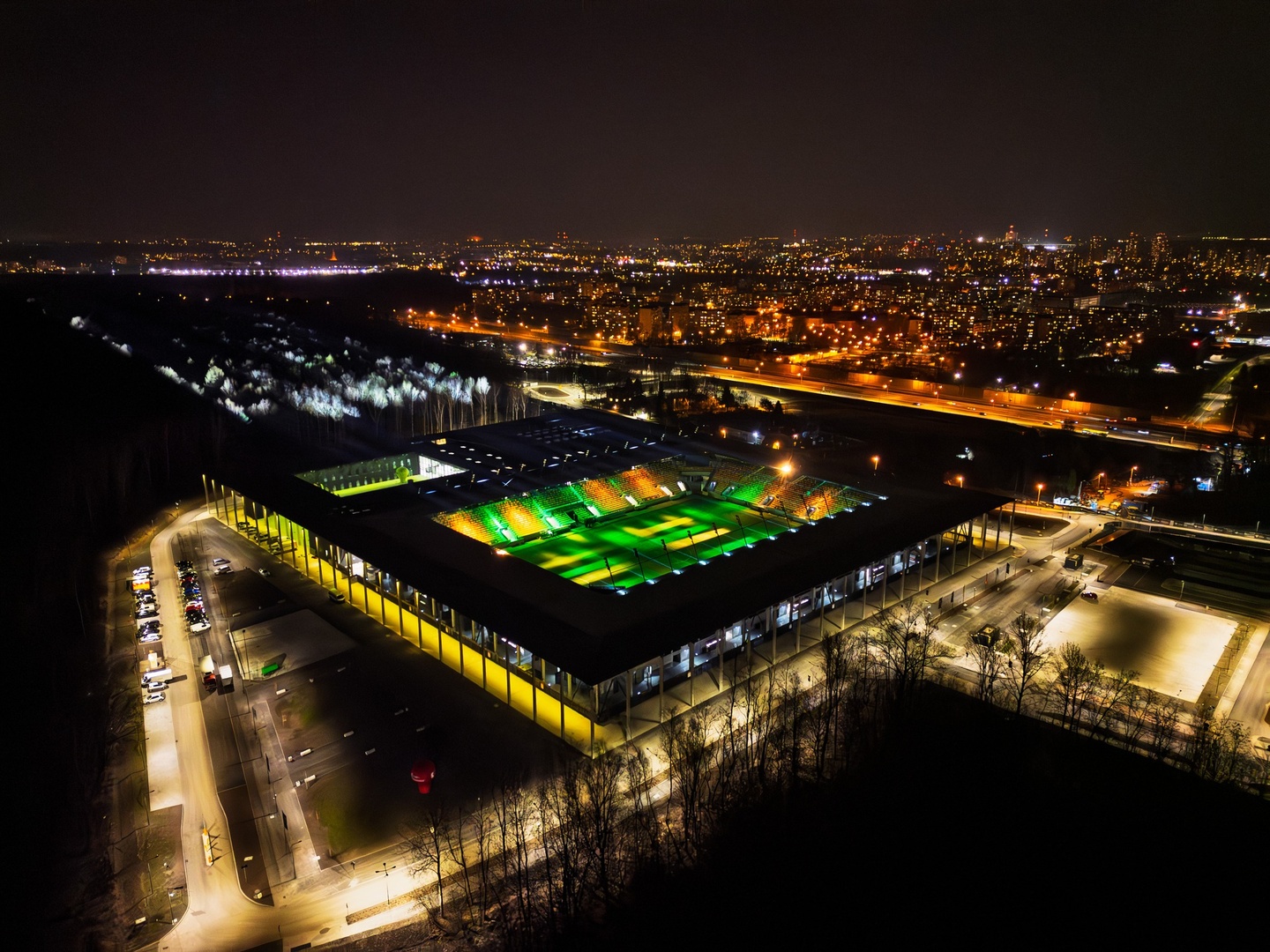 W meczu 28. kolejki PKO BP Ekstraklasy, GKS Katowice po raz drugi przywitał kibiców na Arenie Katowice. Tym razem katowiczanie mierzyli się z walczącą o utrzymanie Puszczą Niepołomice. W składzie GieKSy doszło do kilku zmian względem poprzedniego meczu. Trener Rafał Górak przywrócił do pierwszej jedenastki Lukasa Klemenza, Adriana Błąda i Sebastiana Bergiera. Z powodu przekroczenia limitu żółtych kartek pauzował Mateusz Kowalczyk. Już w 3. minucie Dawid Drachal dopadł do piłki w polu karnym i uderzył tuż nad poprzeczką. Chwilę później Kewin Komar obronił strzał Adriana Błąda. W 10. minucie cios wyprowadziła Puszcza. Herman Barkouski wykorzystał kontrę swojego zespołu i uderzał tak, że piłka po drodze odbiła się od słupka i wpadła do bramki strzeżonej przez Dawida Kudłę.