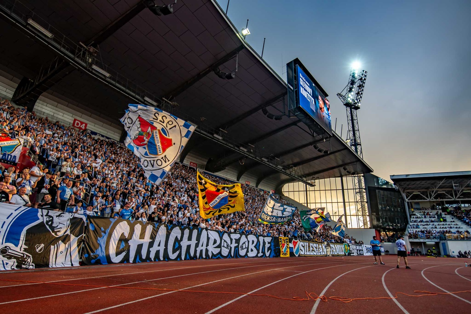 Przez cały mecz Chacharzy wspierani przez 30 GieKSiarzy, głośno dopingowali FCB, a to co działo się na boisku tylko napędzało wokal. Sytuacja na tablicy wyników zmieniała się jak w kalejdoskopie. Walka była niesamowita, gdzie wpadło w sumie 5 bramek, a sędzia pokazał aż 14 kartek, w tym 4 czerwone z czego tylko jedna dla piłkarza gości. Z trzech czerwonych kartoników dla Banika, jeden otrzymał członek sztabu. Każdy może sobie tylko wyobrazić jak emocje budowały atmosferę. Niestety zwycięstwo przypadło drużynie gości i to oni awansowali do dalszej części rozgrywek, ku uciesze grupie ok. 160 kibiców Sigmy, która zasiadła w klatce z 8 wywieszonymi płótnami.