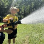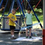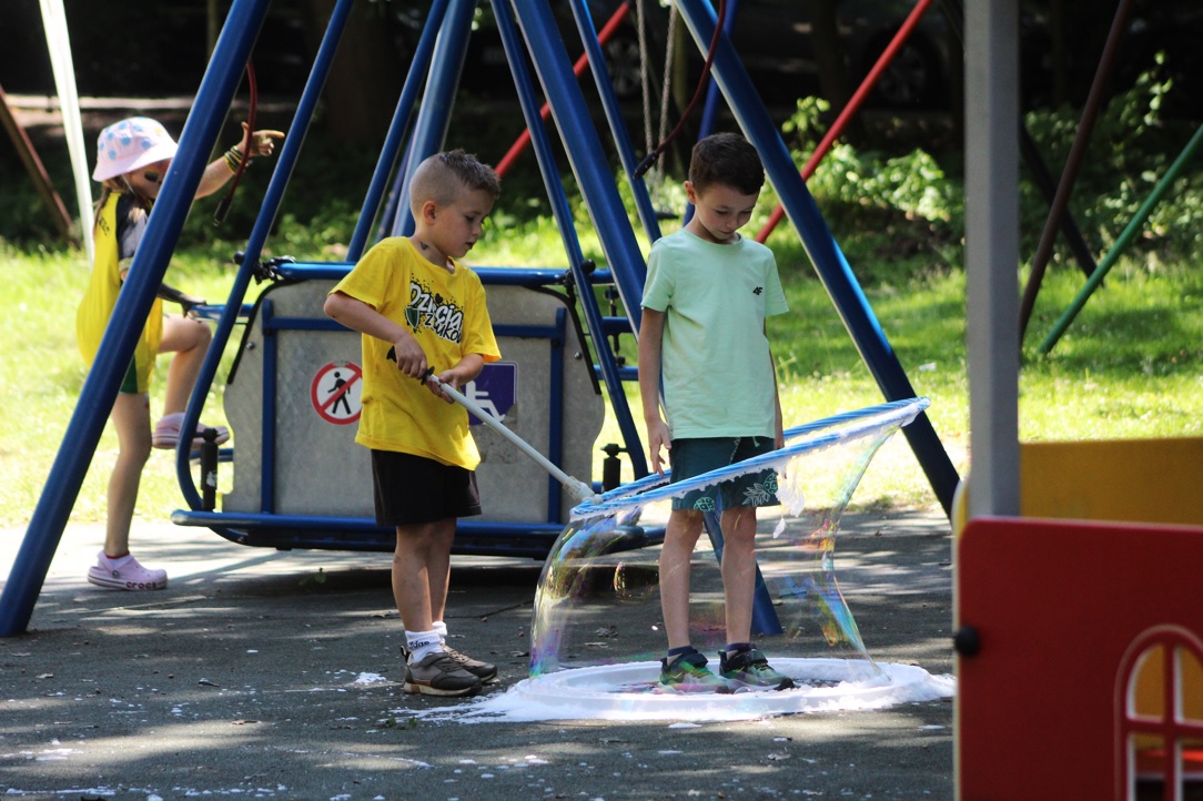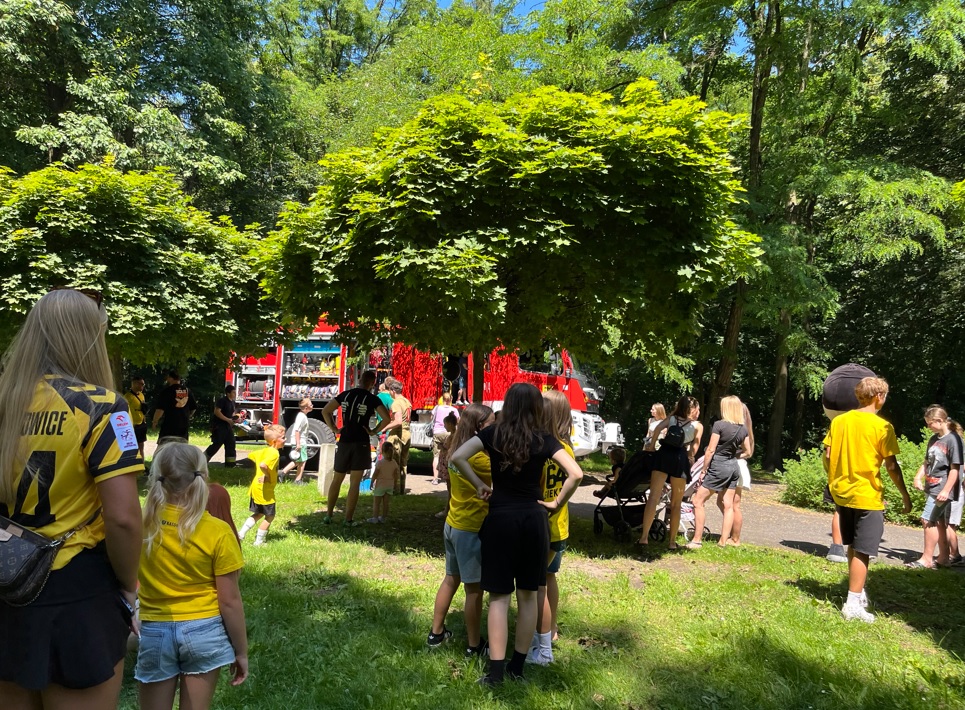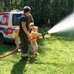 Kolejną atrakcją była wizyta strażaków z OSP Kostuchna, którzy przyjechali na sygnale, ściągając do siebie od razu całą rzeszę dzieciaków, które mogły zwiedzić wóz, usiąść za jego kierownicą i użyć węża niczym podczas pożaru. Swoją drogą wiele osób zdecydowało się poczuć siłę strumienia wodnego na własnej skórze, schładzając się w ten upalny dzień.