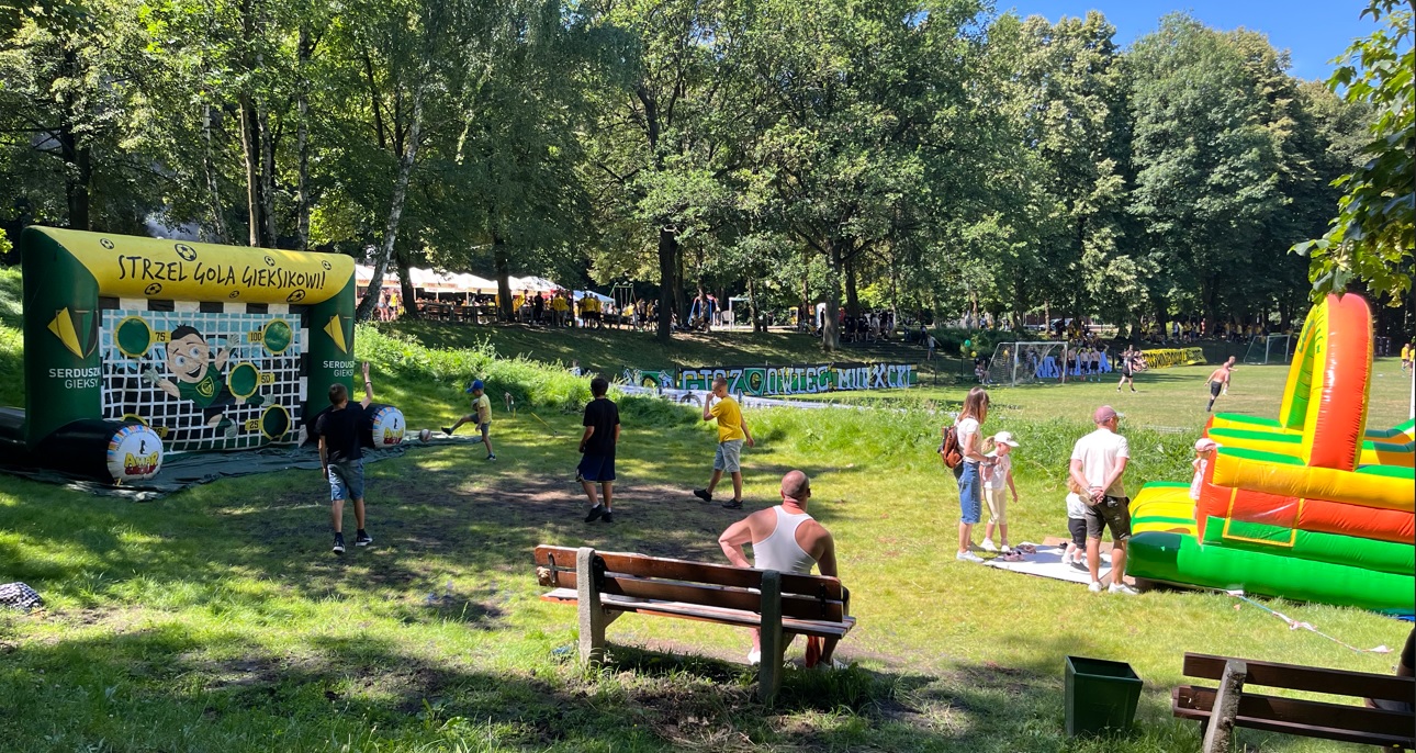 W między czasie odbywał się piknik rodzinny w najlepszym do tego miejscu w Katowicach, gdyż nie ma drugiego takiego parku, gdzie w tak bliskiej odległości od siebie, znajduje się boisko, plac zabaw i knajpa. Poza tym na uczestników czekały w tym roku dmuchańce, w tym bramka celnościowa, animacje dla najmłodszych, o co zadbały „Baby z GieKSy”, na co złożyło się malowanie twarzy, trójkolorowe tatuaże, gry i zabawy, strefa małego artysty, darmowa wata cukrowa, balony z helem, trójkolorowe upominki i słodkości.