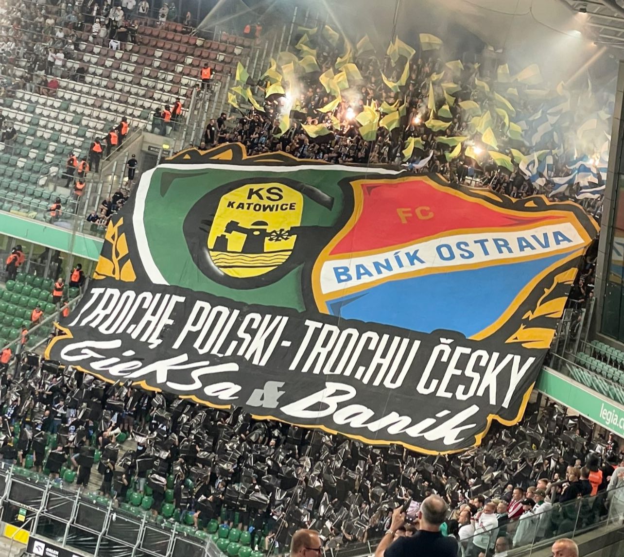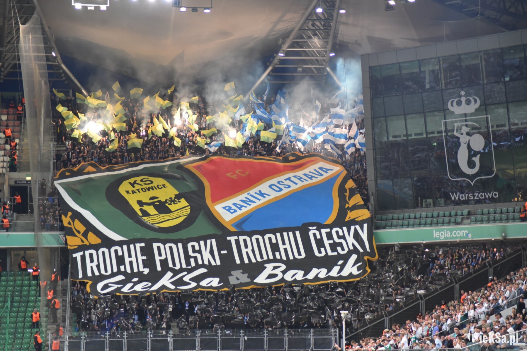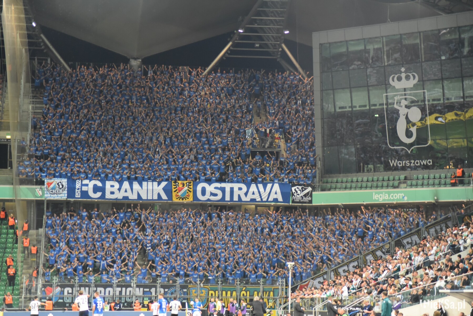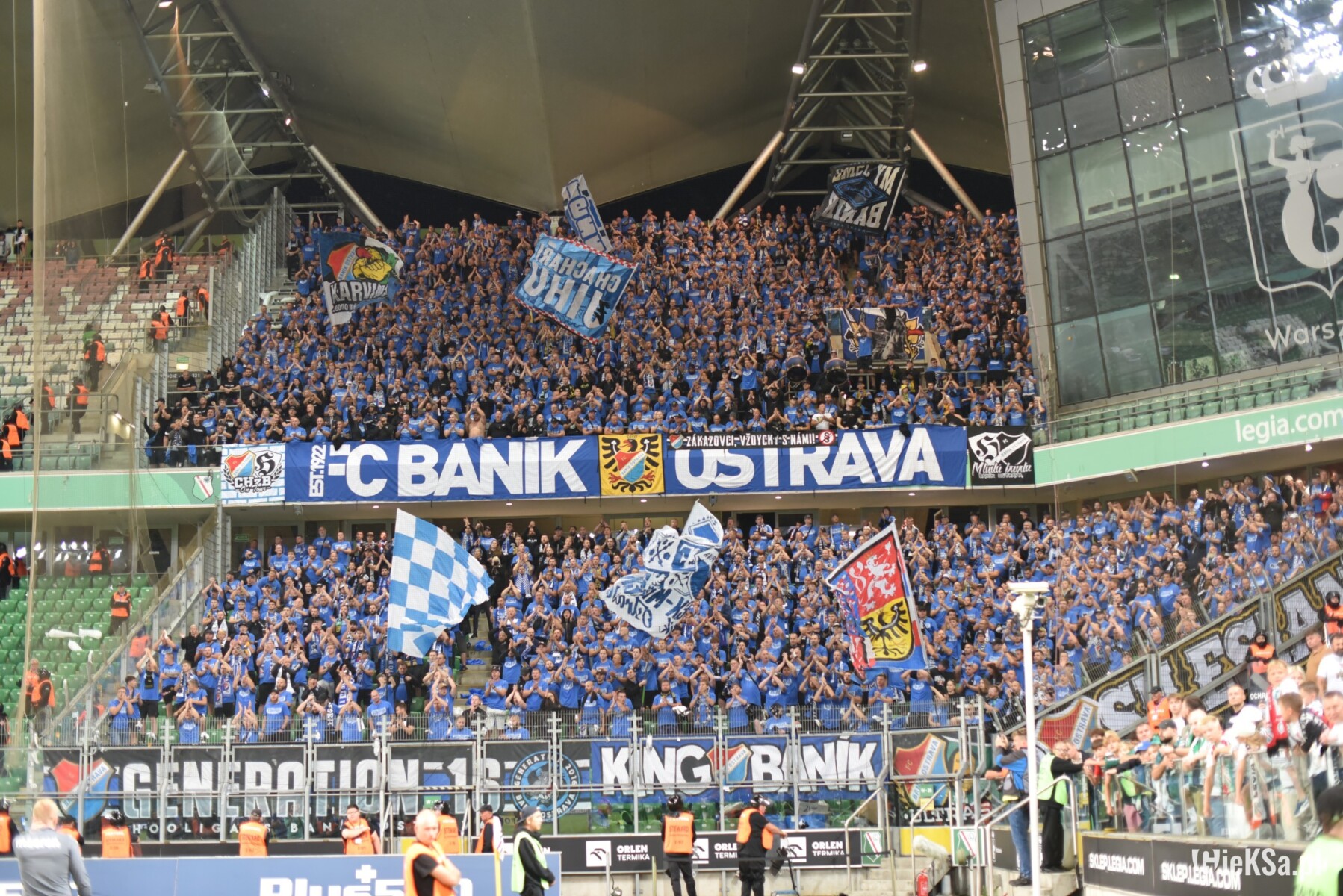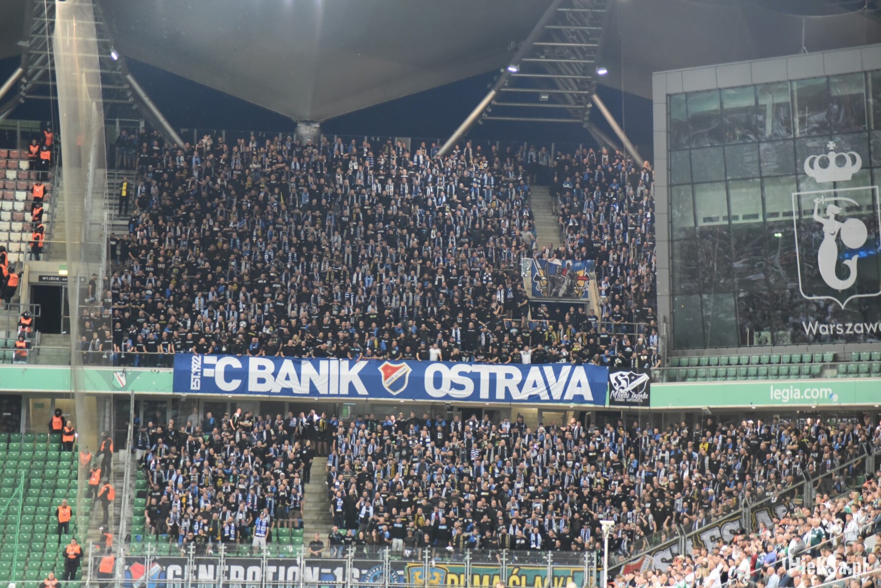 A skoro już o klubie z Ostrawy mowa, to ekipa Baníka, która do Warszawy przyjechała zarówno autokarami, jak i pociągiem, pojawiła się na stadionie na długo przed pierwszym gwizdkiem sędziego i trzeba otwarcie przyznać, że przy Łazienkowskiej pokazała się z bardzo dobrej strony. Chyba już dawno nie gościliśmy na naszym obiekcie kibiców z zagranicy, którzy wypełniliby sektor gości praktycznie do ostatniego miejsca, a jednocześnie nieustannie uskuteczniali wyraźne śpiewy niemalże przez cały mecz. W stolicy w dużej liczbie wspierali ich fani z Katowic. Niestety, ich wchodzenie do sektora gości nie obyło się bez problemów, a wszystko przez nadgorliwość i nieprzychylność służb mundurowych.