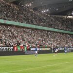Niestety, mimo zaangażowania z naszej strony wynik się nie zmieniał i widmo potencjalnej dogrywki stawało się coraz realniejsze. Arbiter też wydawał się faworyzować Czechów, którym co chwilę odgwizdywał faule. Na szczęście, gdy uskutecznialiśmy „Za kibicowski trud”, to nasz zespół objął prowadzenie. W 74. minucie Ryoya Morishita okiwał golkipera i próbował go pokonać. Po jego strzale futbolówka nie wtoczyłaby się do bramki, gdyby nie jeden z zawodników Baníka, który swoją nieskładną interwencją zafundował sobie „samobója”. Teraz to Legia znalazła się bliżej wyjazdu na Cypr. Do zakończenia pojedynku pozostawał jednak ponad kwadrans, a wiadomo, że ostrawianie nie zechcą tanio sprzedać swojej skóry i o wygraną trzeba będzie powalczyć do ostatnich minut. Z naszej strony staraliśmy się robić wszystko, co tylko mogliśmy, aby pomóc legionistom w końcowym sukcesie. Przekomarzaliśmy się też trochę z przyjezdnymi, odnosząc się do zaprezentowanego przez nich w pierwszej połowie płótna – „Trochę polski, trochę czeski, GieKSa, Baník – skład kure****!”.