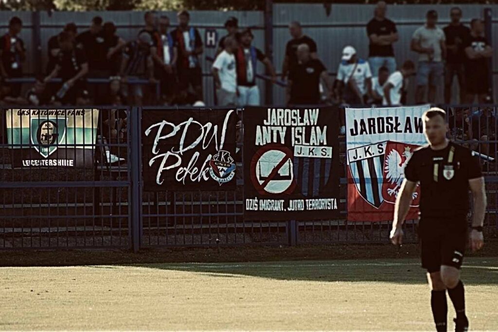 Na meczu z Wisłokiem Wiśniowa w dniu Święta Wojska Polskiego tworzymy młyn i prowadzimy doping. Wspiera nas Unia Nowa Sarzyna w 11 głów i jeden fanatyk GieKSy, z symbolicznymi flagami – dzięki. Na płocie wieszamy dwie nasze flagi: narodową i JAROSŁAW ANTY ISLAM – DZIŚ IMIGRANT JUTRO TERRORYSTA.