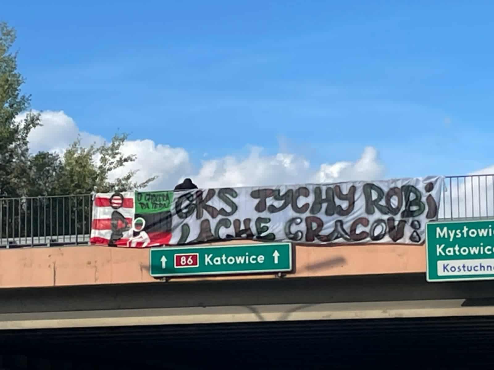 Spotkanie z Cracovią zgromadziło niespełna 12 tysięcy widzów, w tym 636 przyjezdnych. W ich liczbie wsparcie tyskich, którzy obecni byli w 134 osoby z flagą. Witał ich na trasie uszczypliwy transparent „GKS TYCHY ROBI LACHE CRACOVII”.