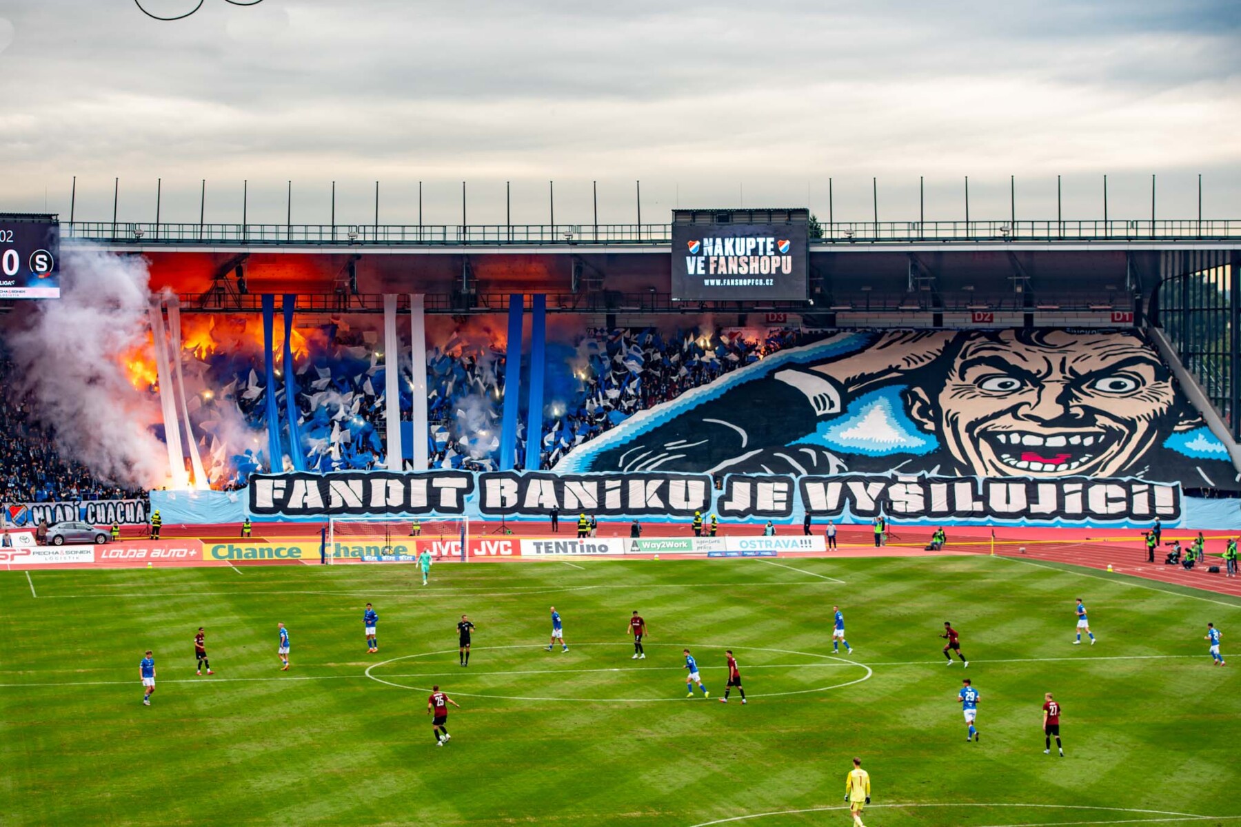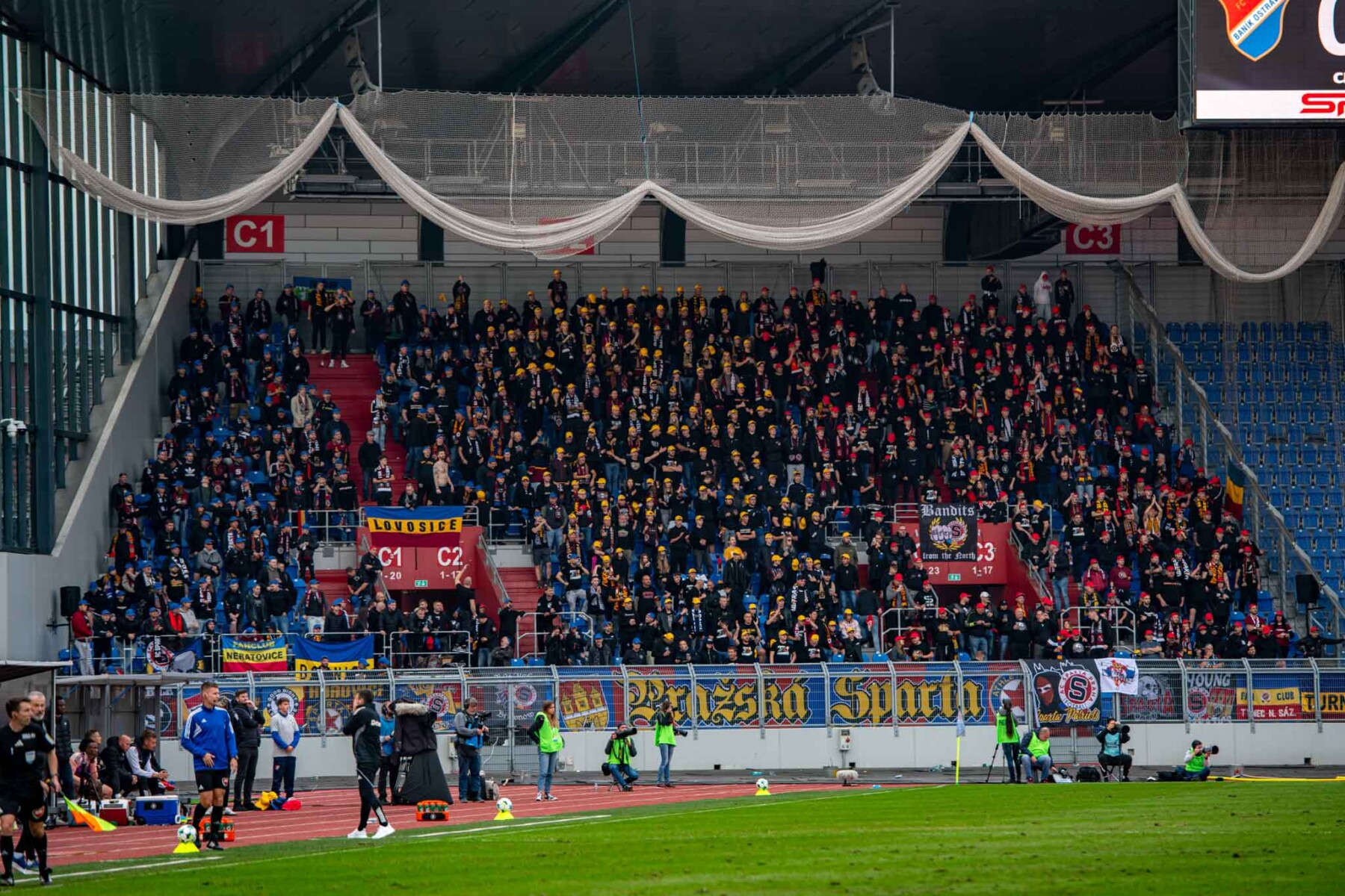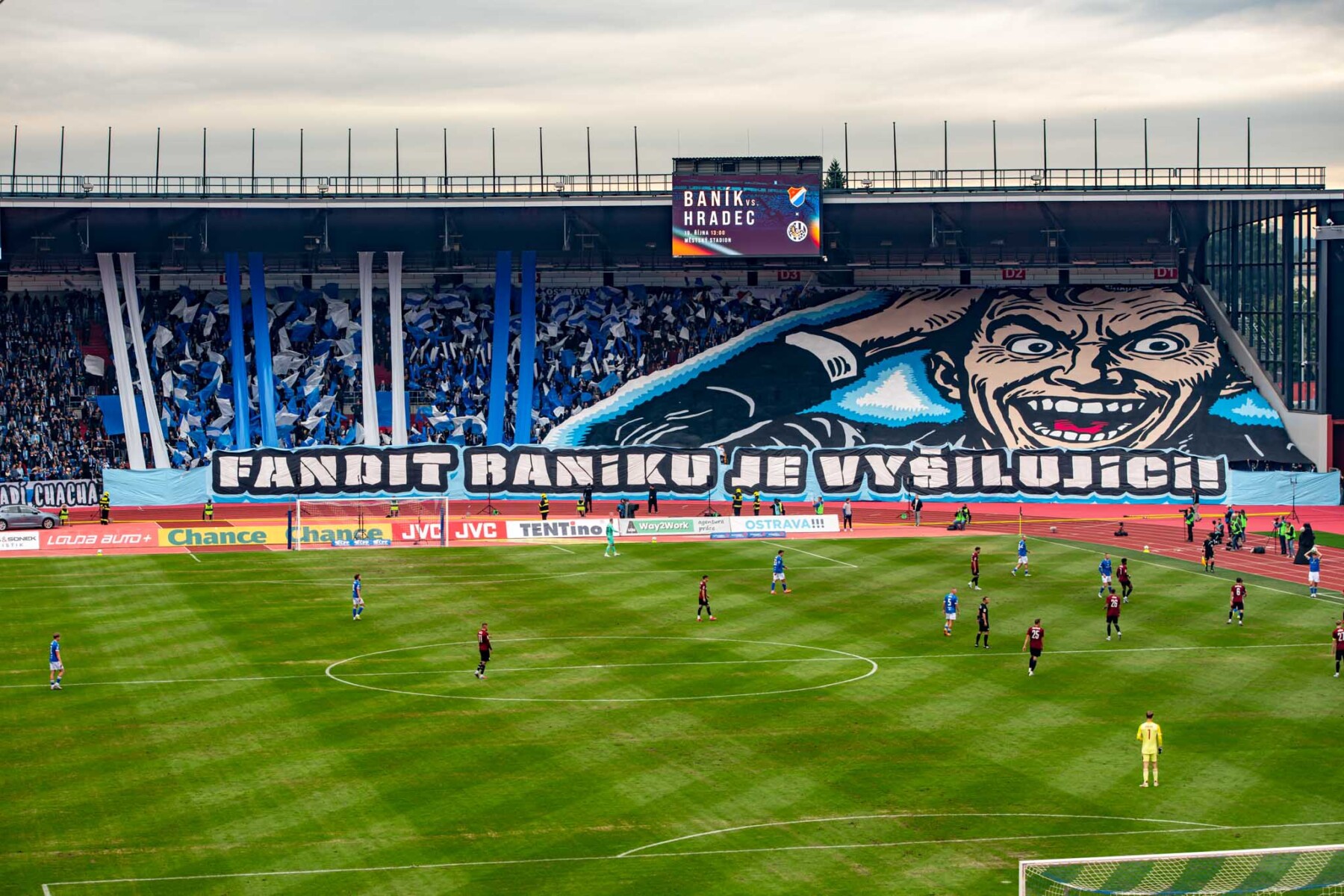 W ostatnia sobotę września Banik podejmował w Ostrawie praską Spartę. Kibicowski hit przyciągnął na trybuny ponad 13,5 tysiąca widzów, gdzie fanatycy zadbali o odpowiednia atmosferę. Chachary zaprezentowali oprawę pt. „FANDIT BANÍKU JE VYŠILUJÍCÍ” (Kibicowanie Banikowi jest szalone) z sektorówką, pasami materiału, machajkami i różnej maści pirotechnikom. Druga prezentacja Banika to już klasyczne racowisko, które stało się tłem powiewających na wietrze chorągwi w pierwszym rzędzie. Przy okazji spłonęły zdobyte barwy Spartan. Ci zaś pojawili się w klatce w ok. 650 głów. Podzielili sektor za pomocą czapeczek na niebiesko, żółto, czerwone strefy. Dodatkowo zaprezentowali sektorówkę „WEEKDAYS – WEEKENDS” przedstawiającą mężczyznę ubranego na co dzień w biurowej pracy, którego przysłania zamaskowany kibic z racą.