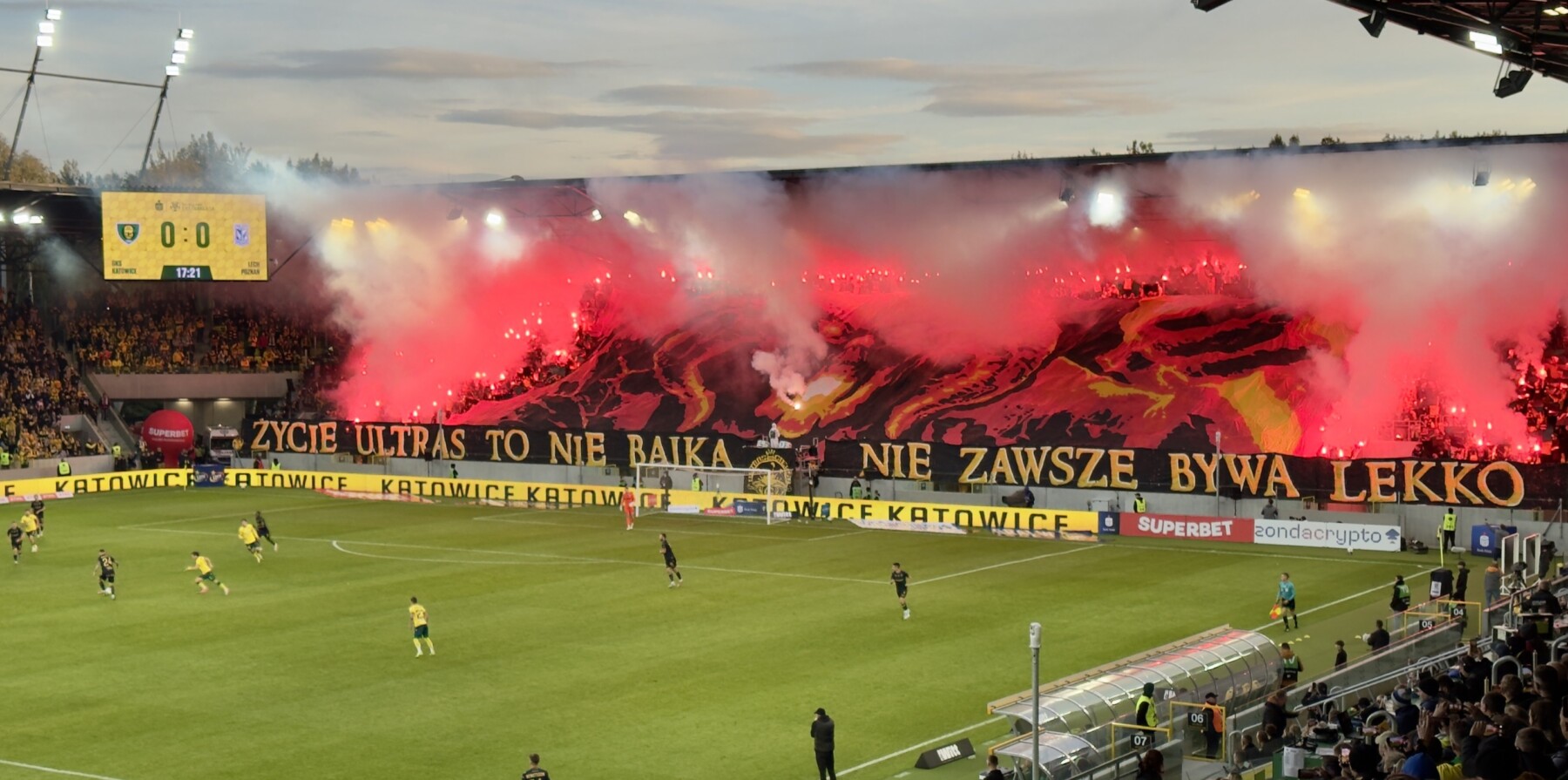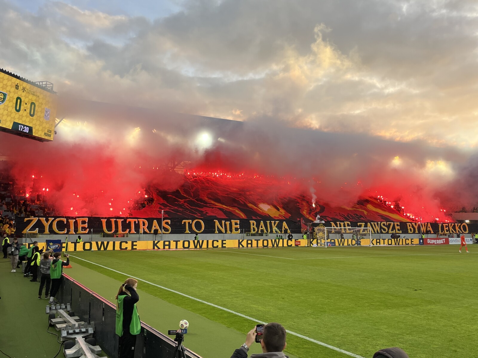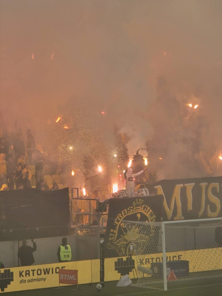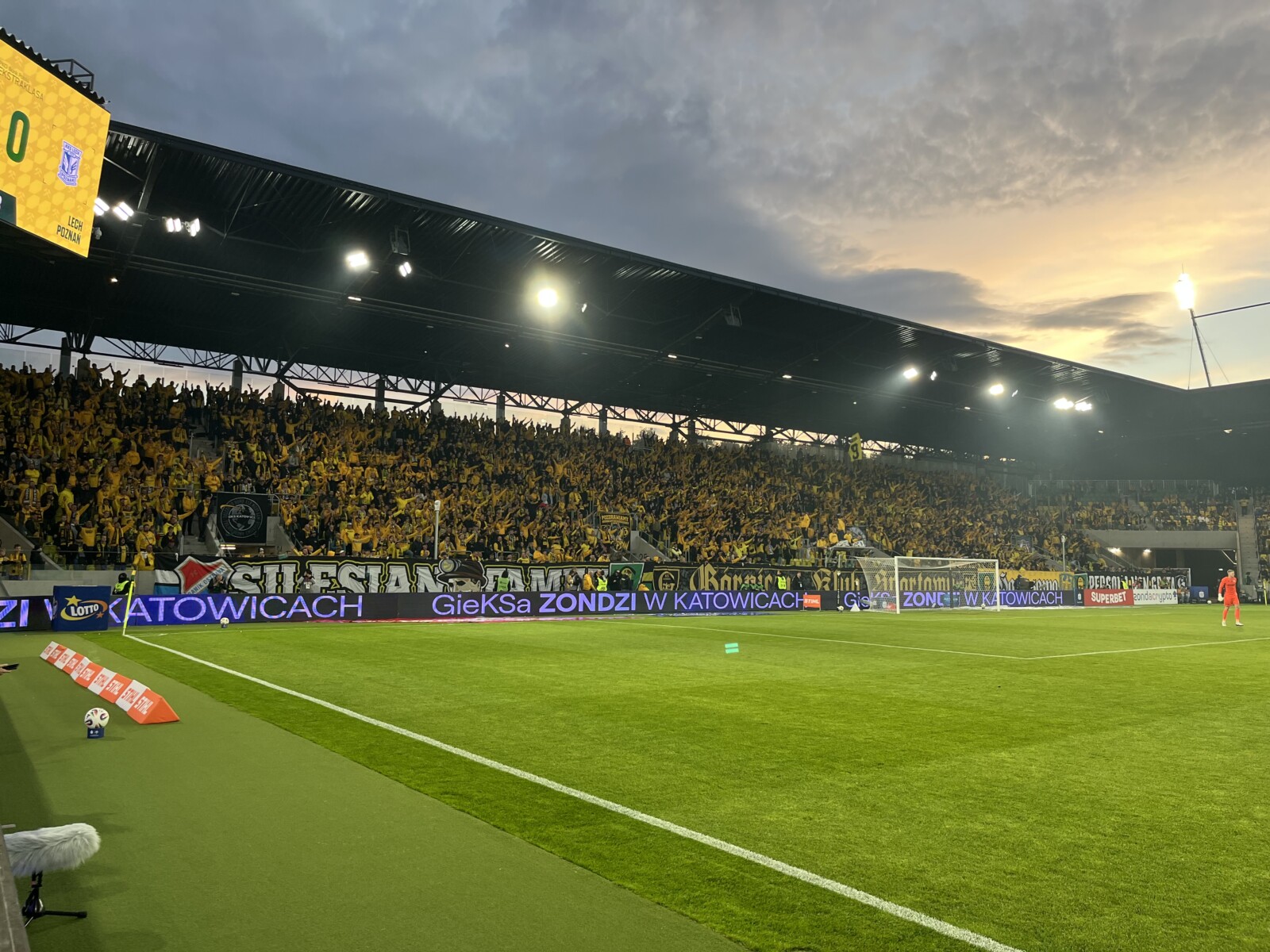 W niedzielne popołudnie GKS Katowice mierzył się w ramach 10. kolejki PKO BP Ekstraklasy z aktualnym Mistrzem Polski – Lechem Poznań. Kilka zmian w składzie GKS-u względem wyjazdowego spotkania z Wisłą Płock. Do wyjściowej jedenastki wrócili Alan Czerwiński oraz Jesse Bosch. Początek meczu o godz. 17:30. Emocje rozpoczęły się dopiero w 17. minucie, gdy GKS Katowice aktywnie pracował w polu karnym i Ilya Shkuryn dobijał strzał Mateusza Kowalczyka. Dwukrotnie górą był jednak Bartosz Mrozek. Ostatecznie jednak sędzia wskazał, iż Shkuryn był na spalonym. Pomiędzy 18. a 31. minutą nastąpiła długa przerwa spowodowana zadymieniem boiska.