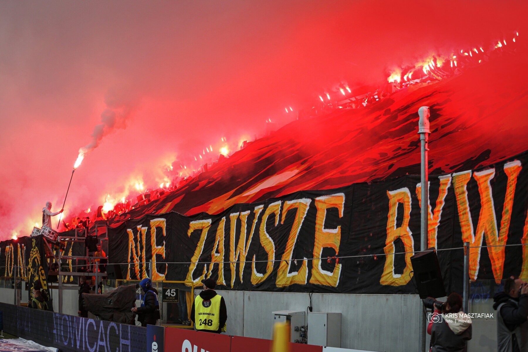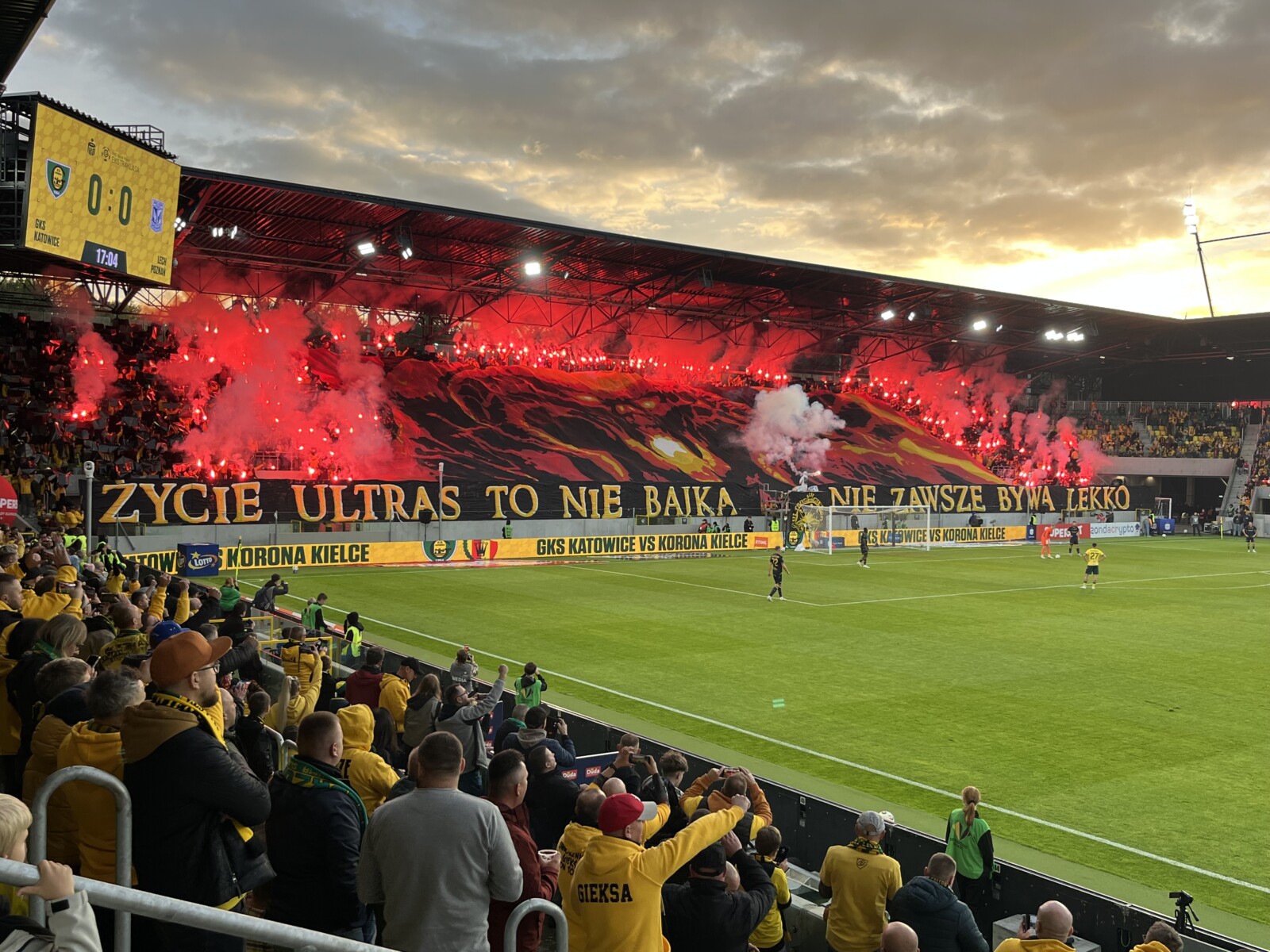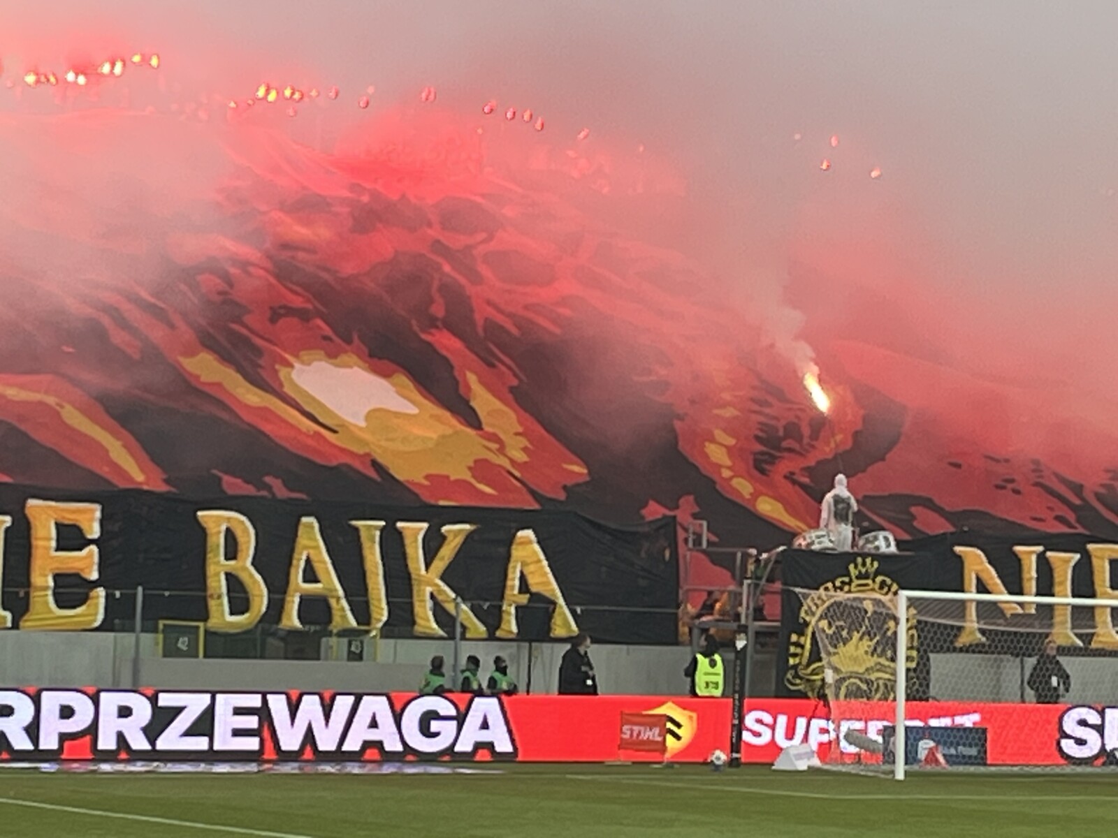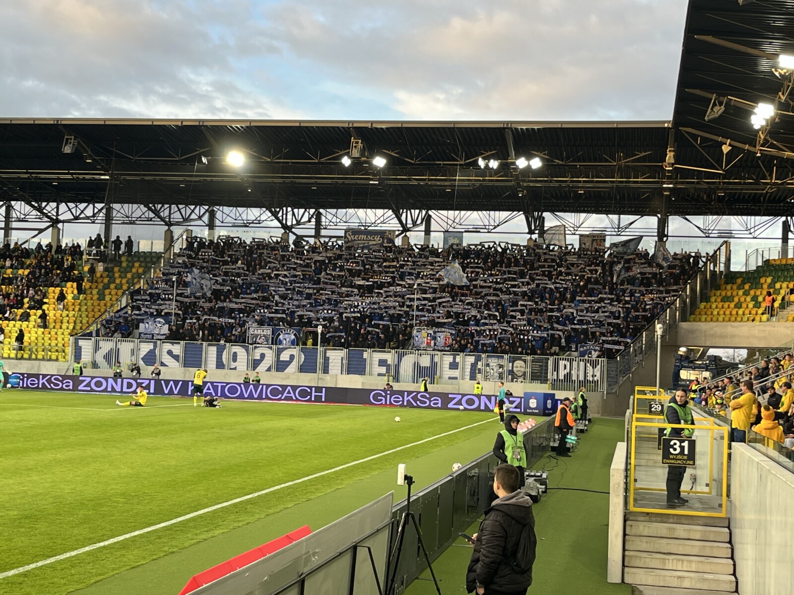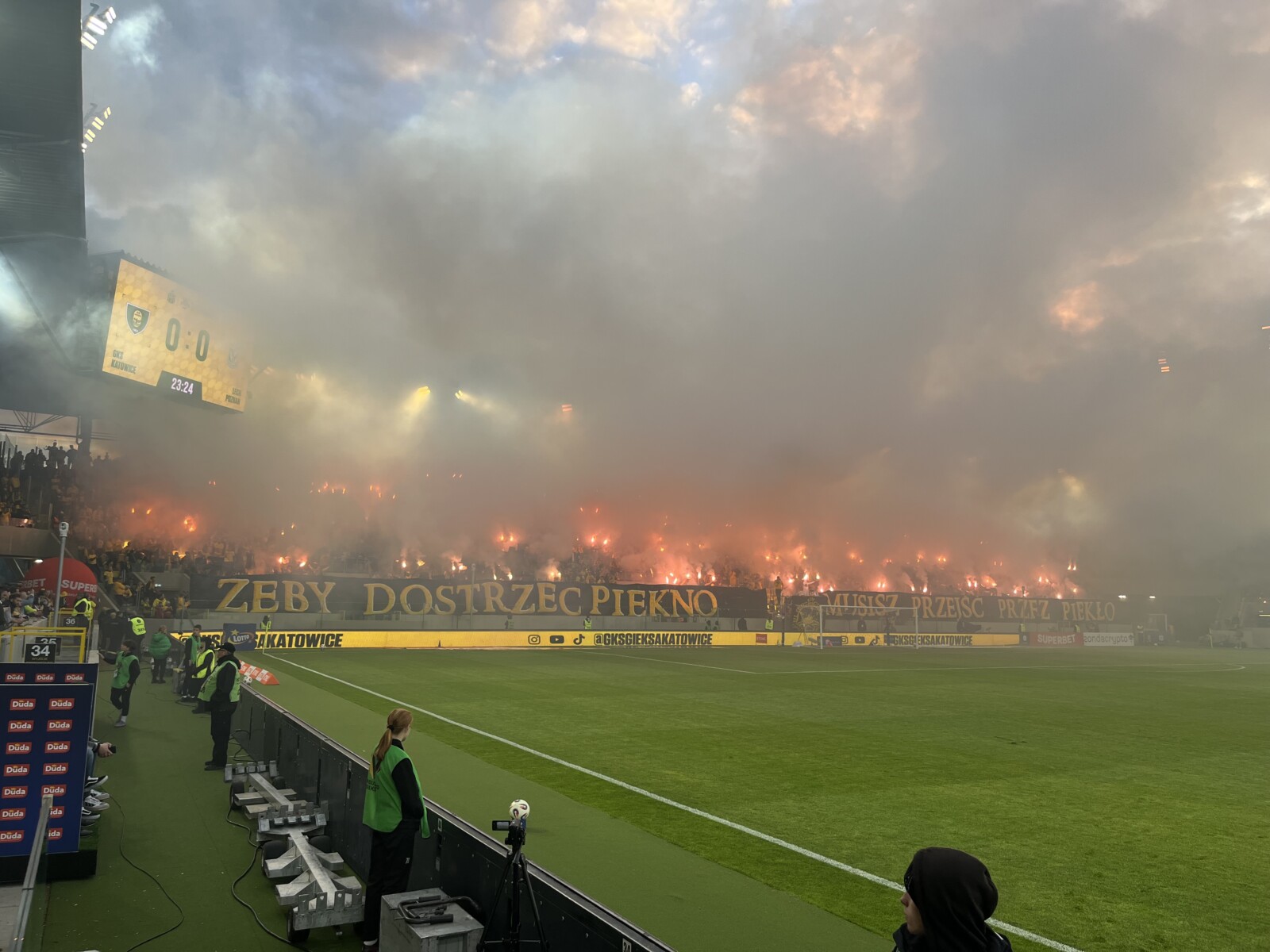 W niedzielne popołudnie GKS Katowice mierzył się w ramach 10. kolejki PKO BP Ekstraklasy z aktualnym Mistrzem Polski – Lechem Poznań. Kilka zmian w składzie GKS-u względem wyjazdowego spotkania z Wisłą Płock. Do wyjściowej jedenastki wrócili Alan Czerwiński oraz Jesse Bosch. Początek meczu o godz. 17:30. Emocje rozpoczęły się dopiero w 17. minucie, gdy GKS Katowice aktywnie pracował w polu karnym i Ilya Shkuryn dobijał strzał Mateusza Kowalczyka. Dwukrotnie górą był jednak Bartosz Mrozek. Ostatecznie jednak sędzia wskazał, iż Shkuryn był na spalonym. Pomiędzy 18. a 31. minutą nastąpiła długa przerwa spowodowana zadymieniem boiska.