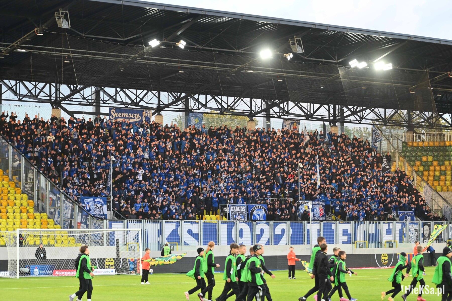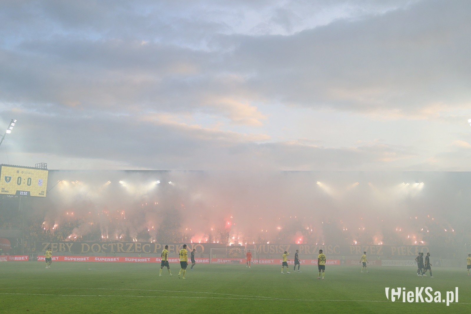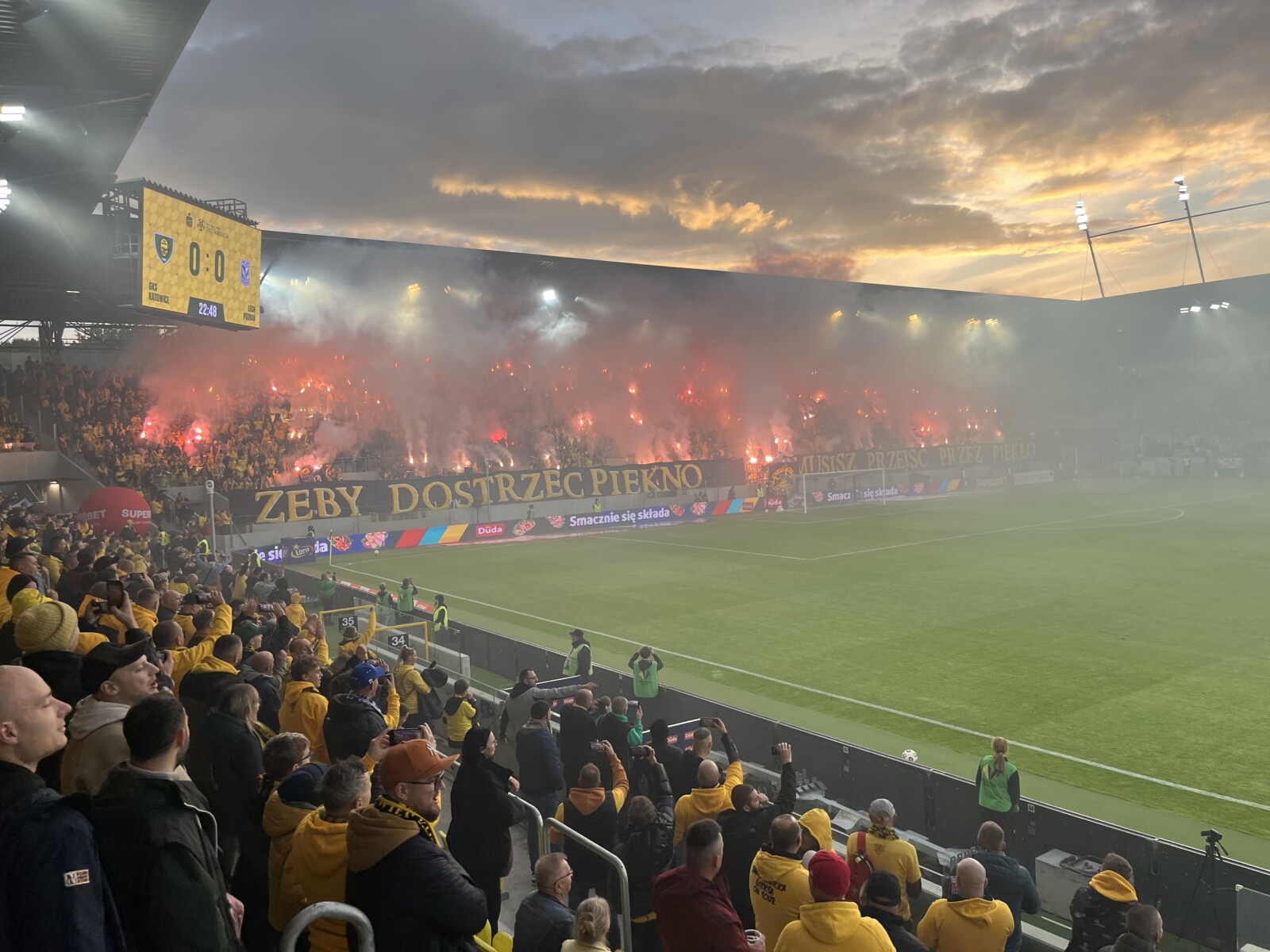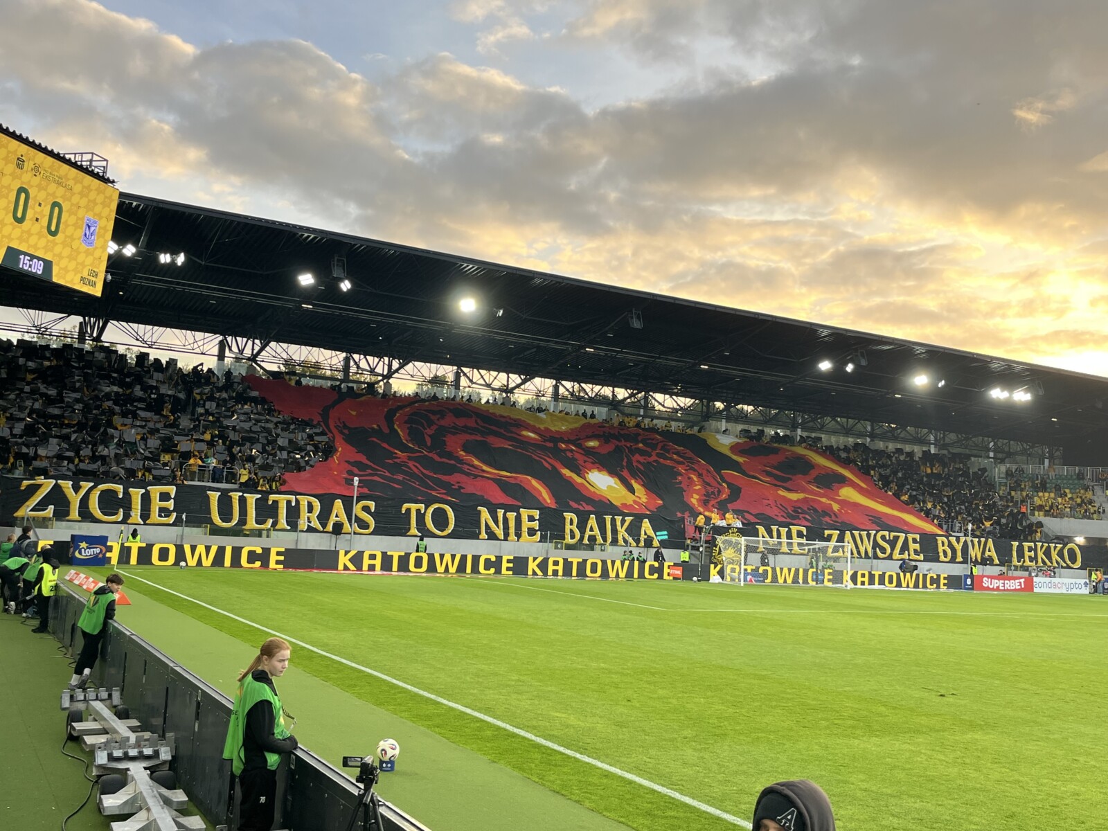 W niedzielne popołudnie GKS Katowice mierzył się w ramach 10. kolejki PKO BP Ekstraklasy z aktualnym Mistrzem Polski – Lechem Poznań. Kilka zmian w składzie GKS-u względem wyjazdowego spotkania z Wisłą Płock. Do wyjściowej jedenastki wrócili Alan Czerwiński oraz Jesse Bosch. Początek meczu o godz. 17:30. Emocje rozpoczęły się dopiero w 17. minucie, gdy GKS Katowice aktywnie pracował w polu karnym i Ilya Shkuryn dobijał strzał Mateusza Kowalczyka. Dwukrotnie górą był jednak Bartosz Mrozek. Ostatecznie jednak sędzia wskazał, iż Shkuryn był na spalonym. Pomiędzy 18. a 31. minutą nastąpiła długa przerwa spowodowana zadymieniem boiska.
