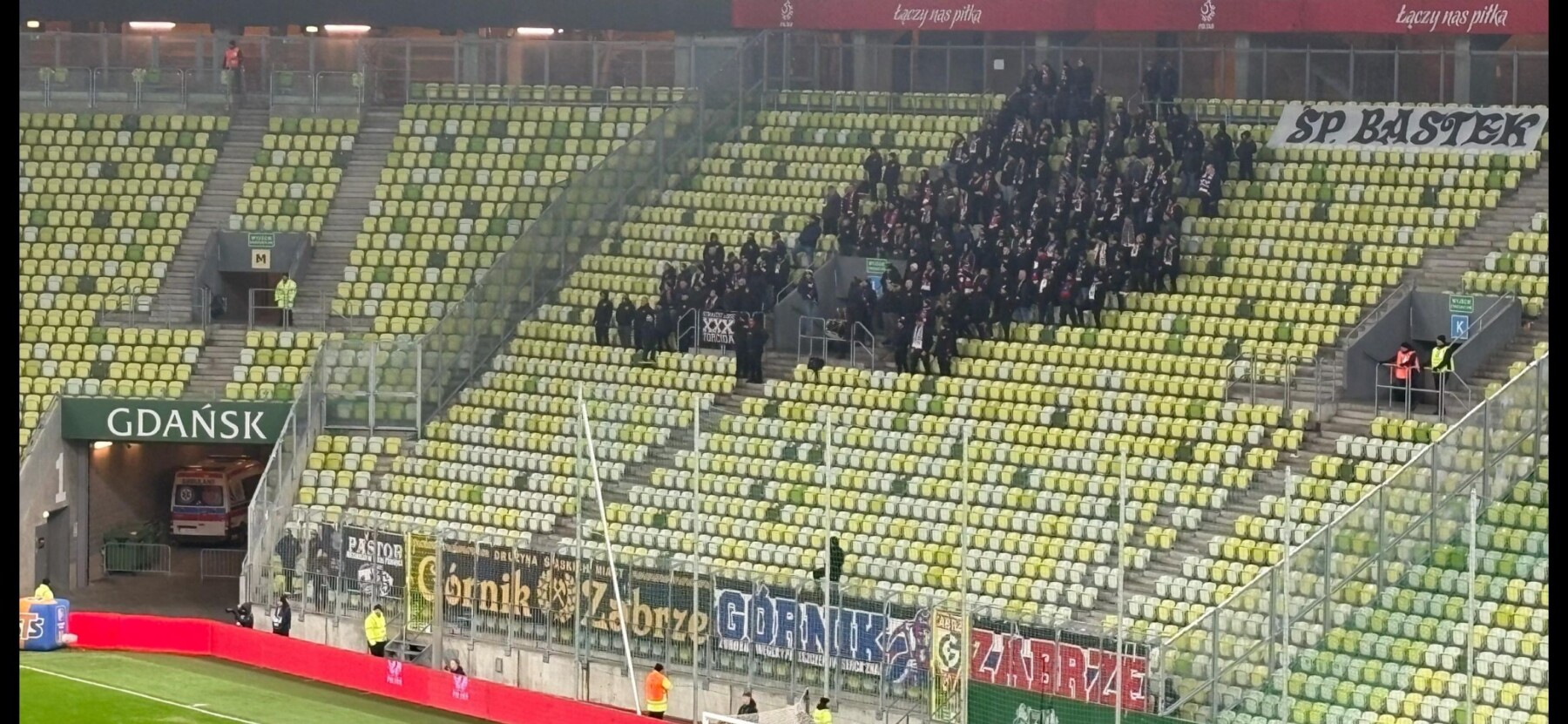 Rywalem Zabrzan w 1/8 Pucharu Polski była Lechia, na dodatek terminarz tak ułożył mecze tak że ten został rozegrany w jednym tygodniu, razem z konfrontacją obu zespołów w ramach ekstraklasy. Dodatkowo oba w Gdańsku, i oba w dni robocze. Pokazuje to jaki jest ciężki los fanatyka, gdzie w grudniu urlopu jak na lekarstwo, a jechać przecież trzeba. Na wtorkowy wojaż, autokarami Torcida wyruszyła z Zabrza o 8:20, w sile 161 osób, GieKSa (2), Wisłoka (1) i Banik (1). Do Trójmiasta dotarliśmy na półtora godziny przed meczem. Wejście sprawne i bezproblemowe. Na wyposażeniu KSG były flagi takie jak: XXX, ŚP. PASTOR, GÓRNIK ZABRZE (Drużyna Śląskich Miast), GÓRNK ZABRZE (Z urobku węgla i …) oraz transparent ŚP. BASTEK dla rudzkiego fanatyka z Nowego Bytomia, który zasilił niedawno szeregi w „sektorze niebo”.