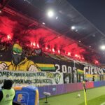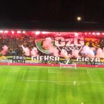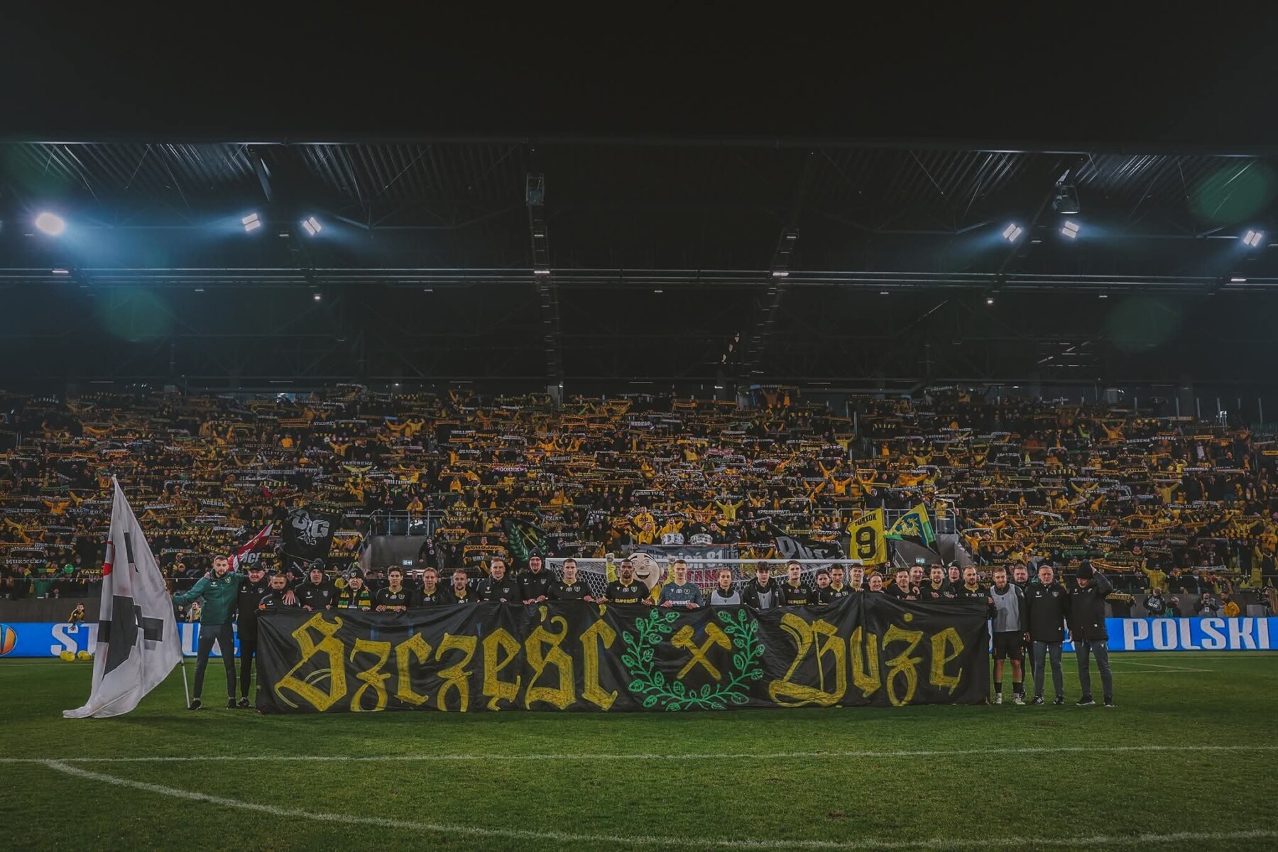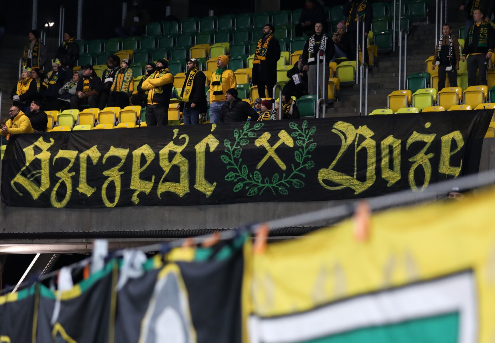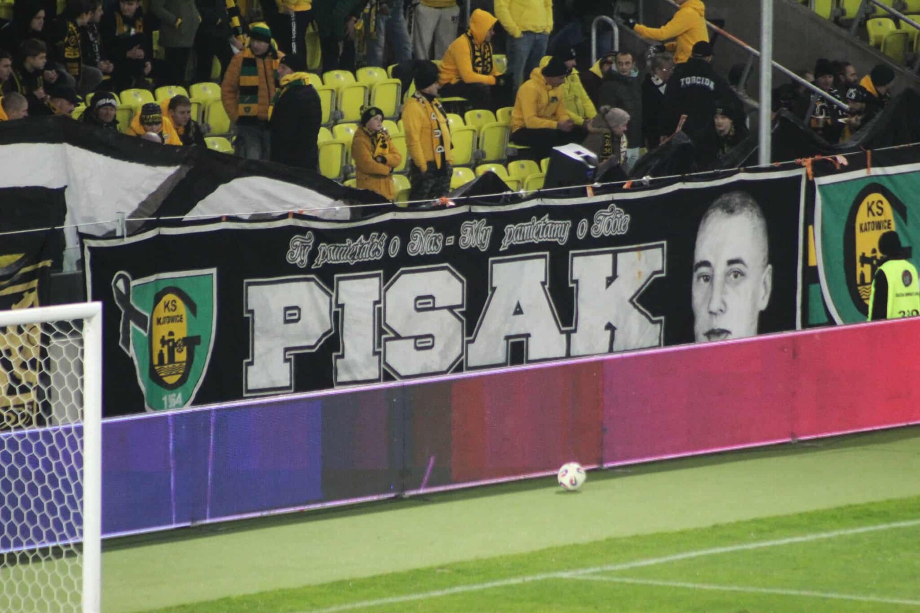 Na płocie zawisło 13 flag, 2 transparenty oraz powiewało 7 chorągwi. Pamiętaliśmy tu o braciach za kratami, w sektorze niebo, górniczych tradycjach oraz grudniowej pacyfikacji strajkujących górników KWK Wujek w 1981 roku. Można powiedzieć, że nasze oflagowanie było zwierciadłem naszej tożsamości i braterskiej więzi.