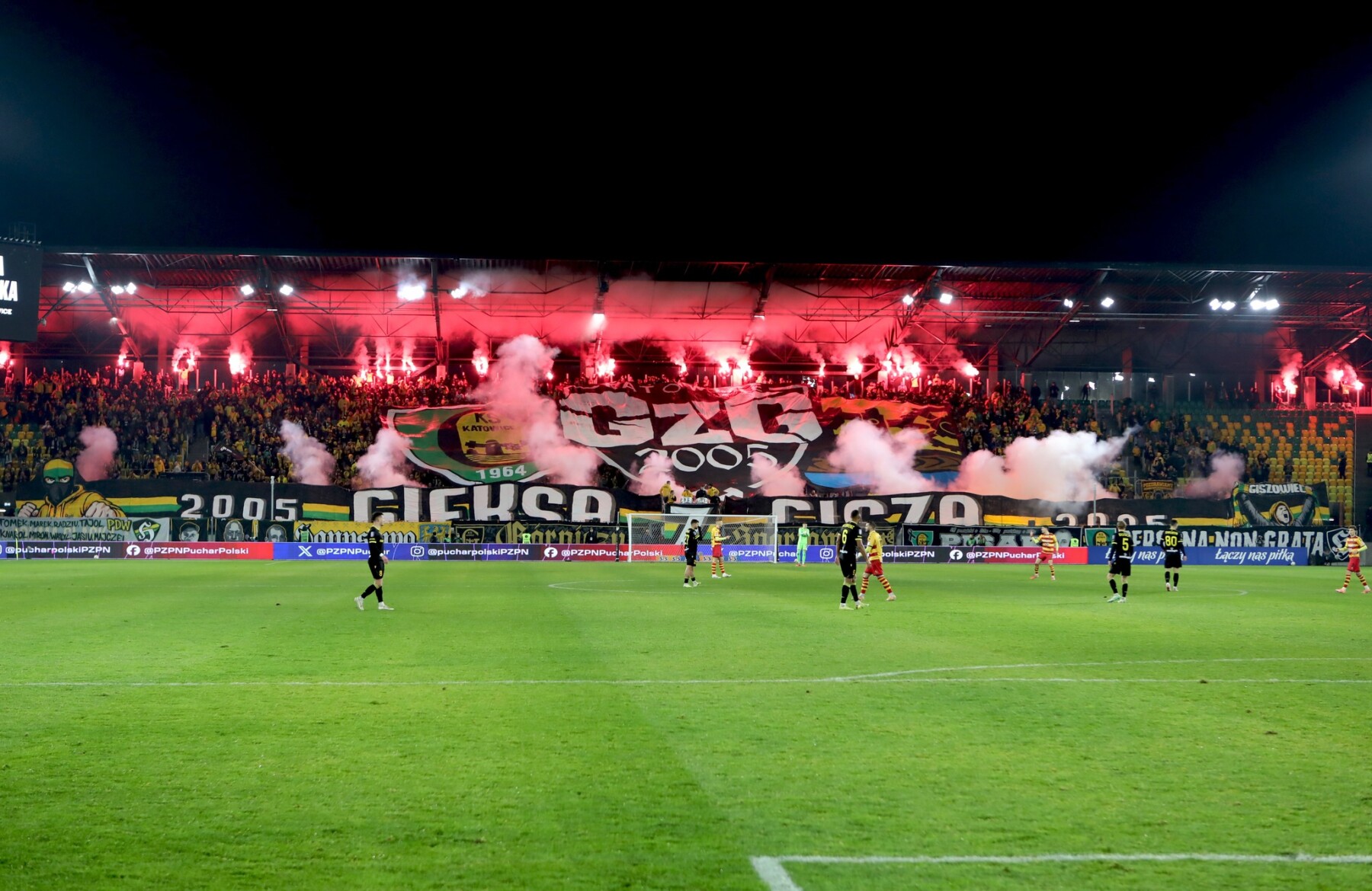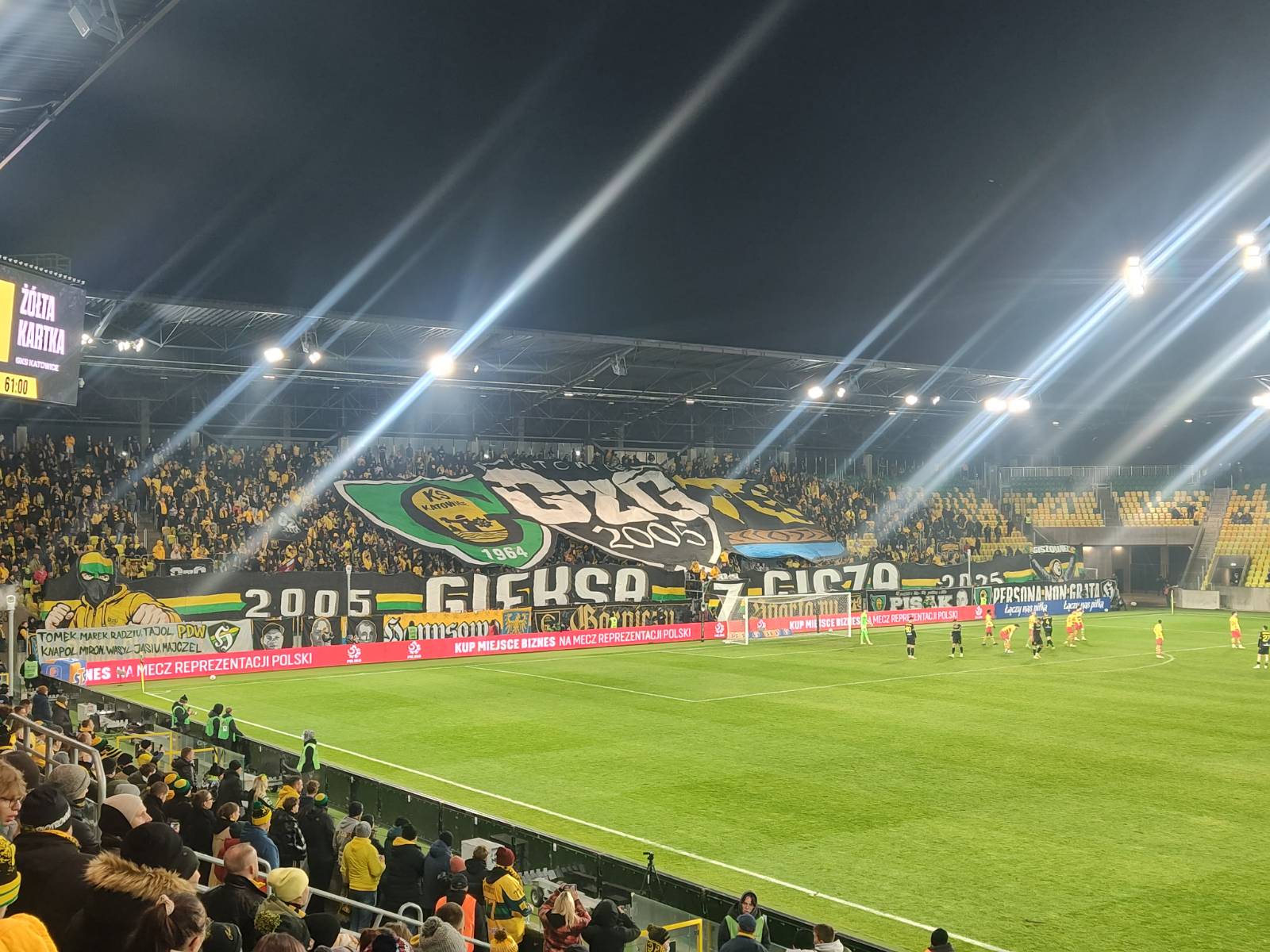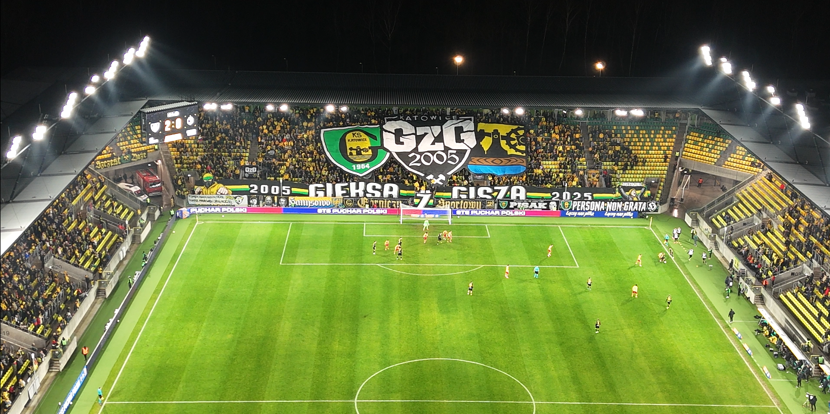 Przez cały czas atmosfera na trybunach była wyśmienita. GieKSa w opatrzności górniczej patronki, niespodziewanie prowadziła mecz przez całe spotkanie, a gol na 3:1 w doliczonym czasie gry wprawił nas w euforię. Długo dziękujemy piłkarzom i całemu sztabowi za to historyczne zwycięstwo, bo GieKSa od 21 lat nie awansowała do 1/4 Pucharu Polski.